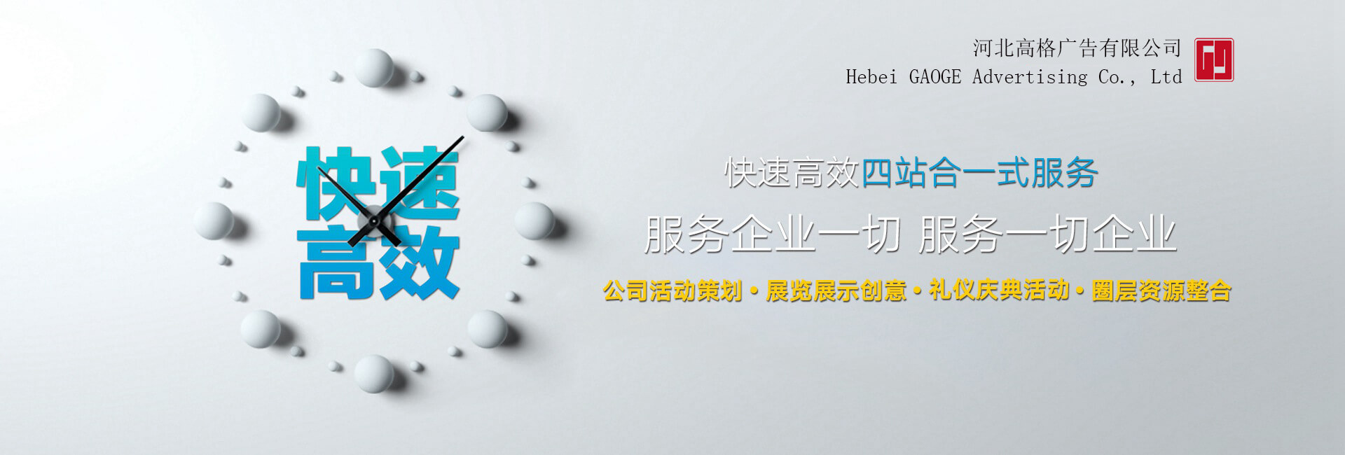 河北高格廣告有限公司是一家專業(yè)致力于大型文化活動組織策劃、展覽展示工程策劃、展臺設計制作、特裝展臺搭建、會議會場布置、巡回展覽、路演、公關(guān)推廣執(zhí)行、會議慶典禮儀、路演設備租賃、倉儲等一站式的專業(yè)服務公司。本公司憑借創(chuàng)新領(lǐng)先的服務理念,大型的廠房空間,現(xiàn)代化的機械設備,高素質(zhì)專業(yè)的服務團隊,及在該行業(yè)多年的實戰(zhàn)經(jīng)驗,為地產(chǎn)營銷提供了優(yōu)秀的活動方案、為不同行業(yè)的數(shù)千家企業(yè)提供了專業(yè)個性化的空間展示方案,幫助客戶實現(xiàn)了自我品牌的提升和企業(yè)利潤的雙贏。...